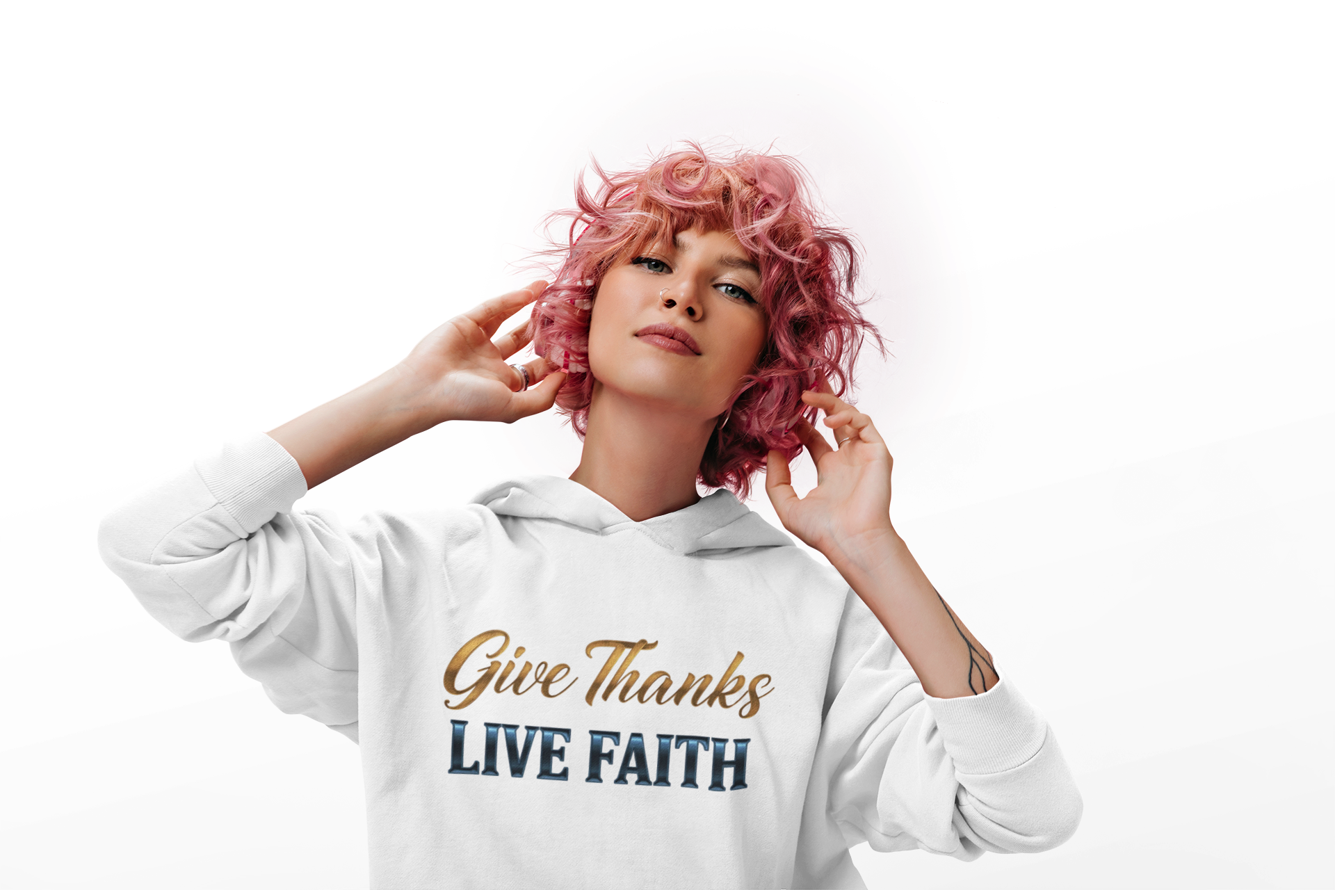 “Give Thanks, Live Faith” Unisex Midweight Softstyle Fleece Hoodie